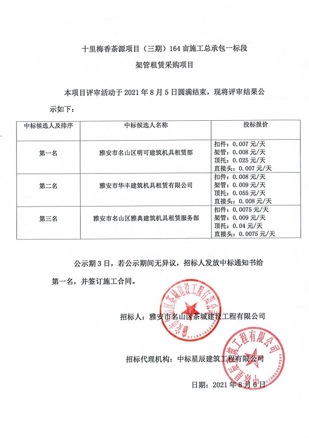 十里梅香茶源項(xiàng)目(三期)164畝施工總承包一標(biāo)段架管租賃采購(gòu)中標(biāo)公示