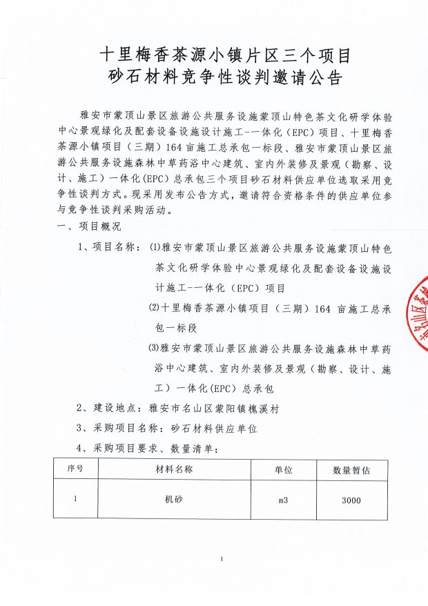 十里梅香茶源小鎮(zhèn)片區(qū)三個(gè)項(xiàng)目砂石材料競爭性談判邀請公告